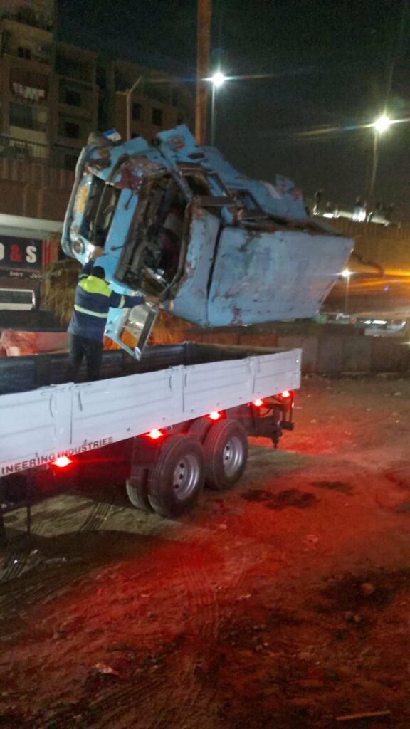 فى تحرك سريع قام السيد اللواء أ.ح.م / اشرف بركات رئيس الجهاز التنفيذى لمياه الشرب والصرف الصحى يرافقه السيد المهندس / عادل حسن رئيس مجلس ادارة شركة صرف صحى القاهرة والسيد المهندس/ هاني هاشم – رئيس الإدارة المركزية للتنفيذ بتفقد موقع الحادث للاطمئنان على العاملين وتفقد المشروع عقب واقعة صدام سيارة ميكروباص بسور مشروع تنفيذ بيارة الصرف الصحى ضمن مشروع مجمع صرف صحى الخليفة المأمون بمنطقة الزاوية الحمراء محافظة القاهرة، ولم يسفر الحادث عن حدوث اى خسائر بالارواح .