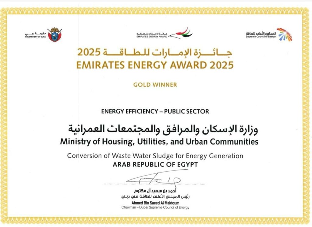 أعلنت وزارة الإسكان والمرافق والمجتمعات العمرانية، فوز مشروع معالجة الحمأة الناتجة من محطة معالجة الصرف الصحي بالتنقية الشرقية بمحافظة الإسكندرية وتحويلها إلى طاقة، بـ «جائزة الإمارات للطاقة»، التي يمنحها المجلس الأعلى للطاقة بدولة الإمارات العربية المتحدة مرة كل عامين، وذلك تقديرًا لجهود مصر في تطبيق أحدث النظم البيئية والتكنولوجية في تحويل الحمأة إلى طاقة مستدامة.